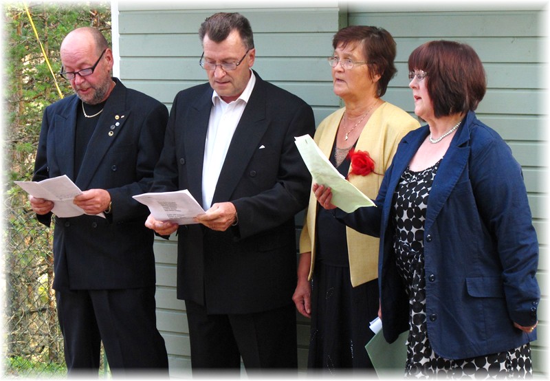 Jari piti näpäkän aloituspuheen tuttuun, rennon "letkeään" tapaansa, hieman historiaakin valoittaen ja korostaen hautausmaan merkitystä nykyaikana ihan laajemmastakin näkökulmasta. Talkootyötä Jari piti esimerkillisenä osoituksena siitä mihin pystytään, kun ryhdytään tosissaan toimeen. Irmalle, Pentille ja Saulille töiden organisoijina ja "puuhamiehinä" pitää nostaa hattua. Koko kylän imago on parantunut hyvin hoidetun hautausmaan myötä.
