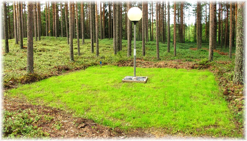Takana näkyy muualle haudattujen muistomerkki, sekä Uurnalehdon valaisinpylväs.