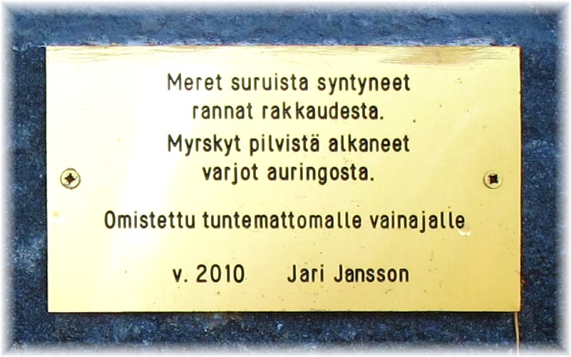 Jarin laatima kyltti "Tuntemattoman uurnahaudalle"