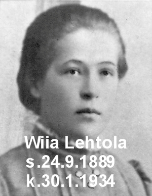 Wiia (Sofia) Lehtola s. 24.9.1889, k. 30.1.1934 ***